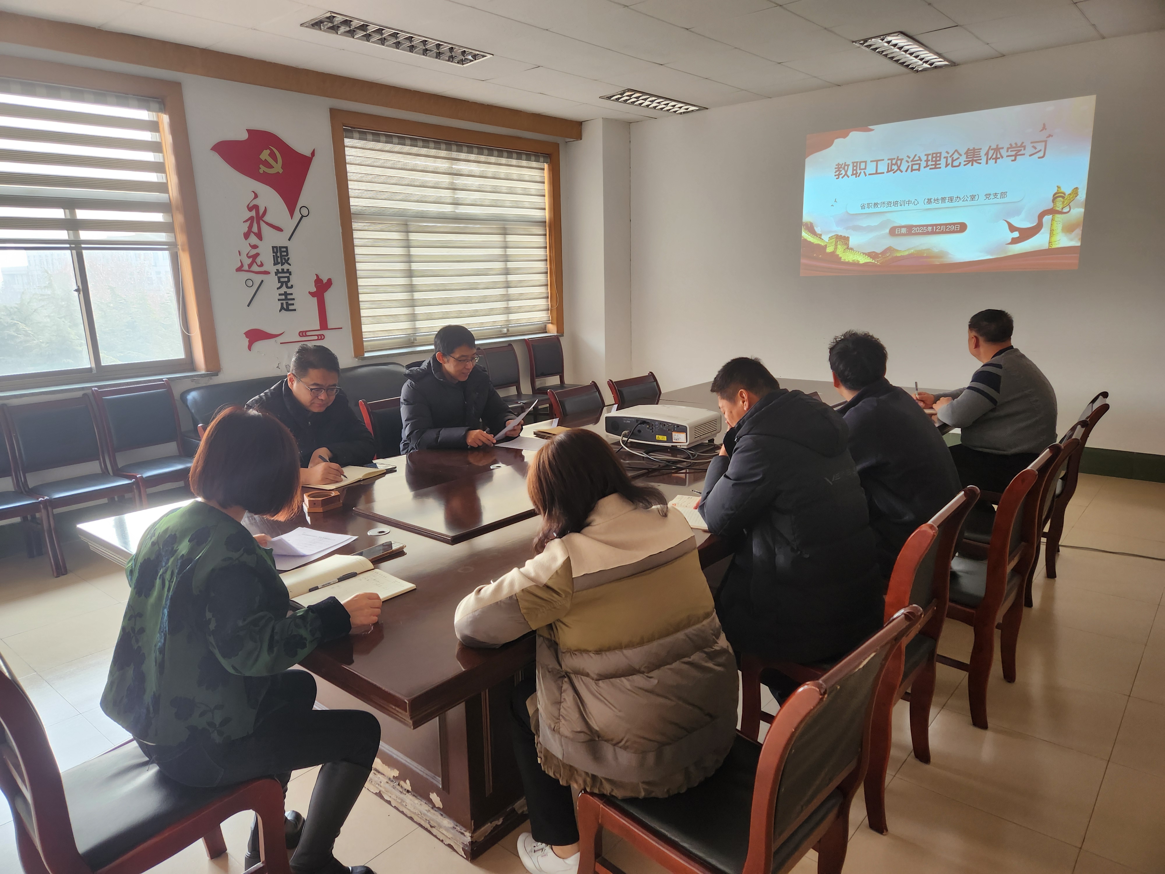 12月29日上午,省职教师资培训中心(基地管理办公室)党支部在鸿远楼408会议室召开全体教职工集体学习会议,专题学习习近平总书记在主持召开中共中央政治局会议、中共中央政治局民主生活会上的重要讲话精神,传达学习近期党建工作通知精神。会议由党支部书记、省职教师资培训中心(基地管理办公室)主任孙贤明主持。